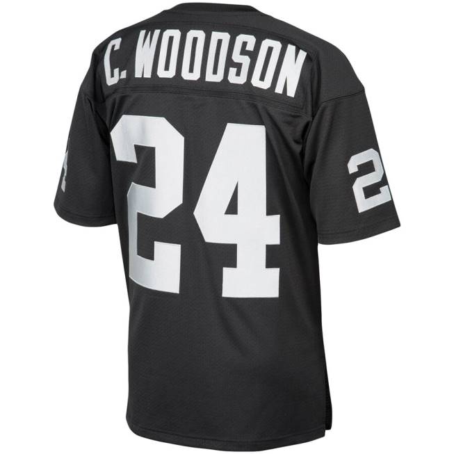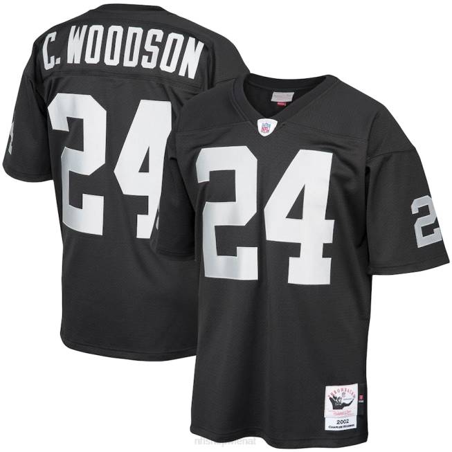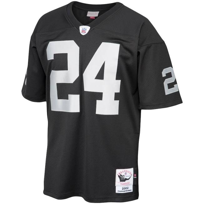 NFL Männer Authentisches Retro-Trikot der Las Vegas Raiders Charles Woodson Mitchell & Ness in Schwarz aus dem Jahr 2002 4R0Z497 Kleidung
