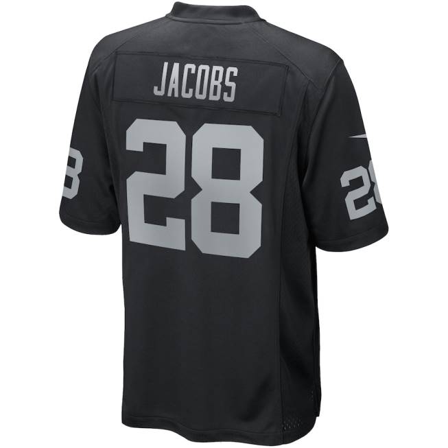NFL Männer Las Vegas Raiders Josh Jacobs Nike schwarzes Game-Spieler-Trikot 4R0Z195 Kleidung