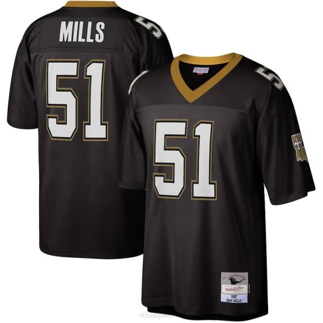 NFL Männer New Orleans Saints Sam Mills Mitchell & Ness Schwarzes Legacy-Replika-Trikot von 1987 4R0Z1659 Kleidung